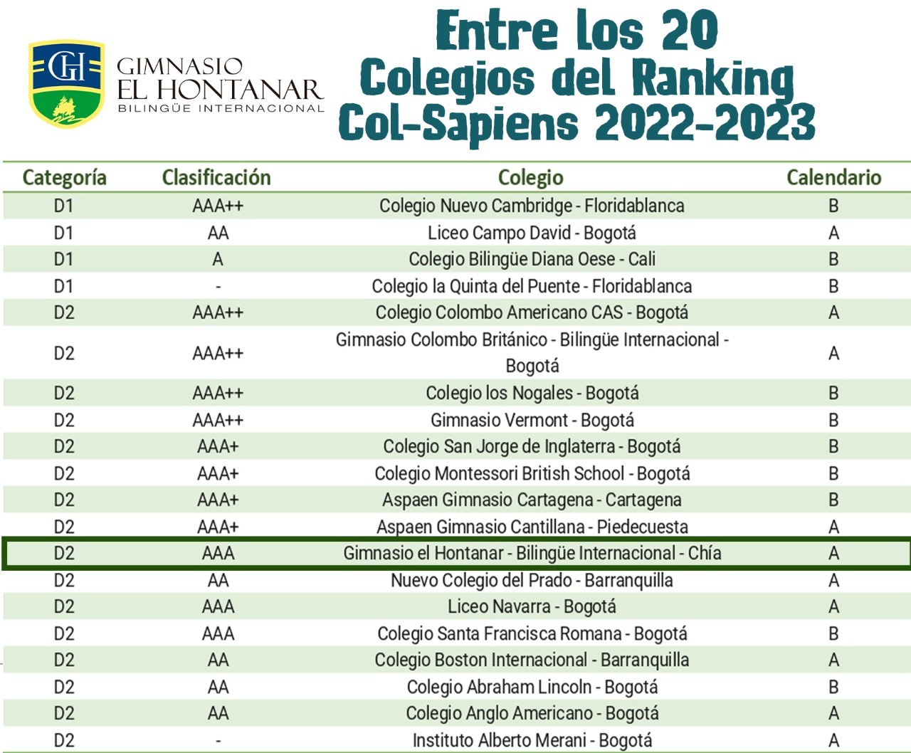 1er Colegio Calendario A con programa de